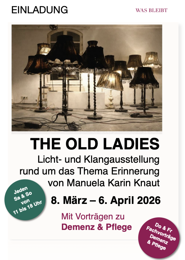Die Veranstaltung „Was bleibt“ möchte Menschen zusammenbringen und Raum für Austausch rund um das Themenfeld Demenz und Pflege schaffen. Die Ausstellung der international anerkannten Künstlerin Manuela Karin Knaut sowie verschiedene Fachvorträge, musikalische und filmische Beiträge bieten eine Plattform für Begegnungen und Gespräche.